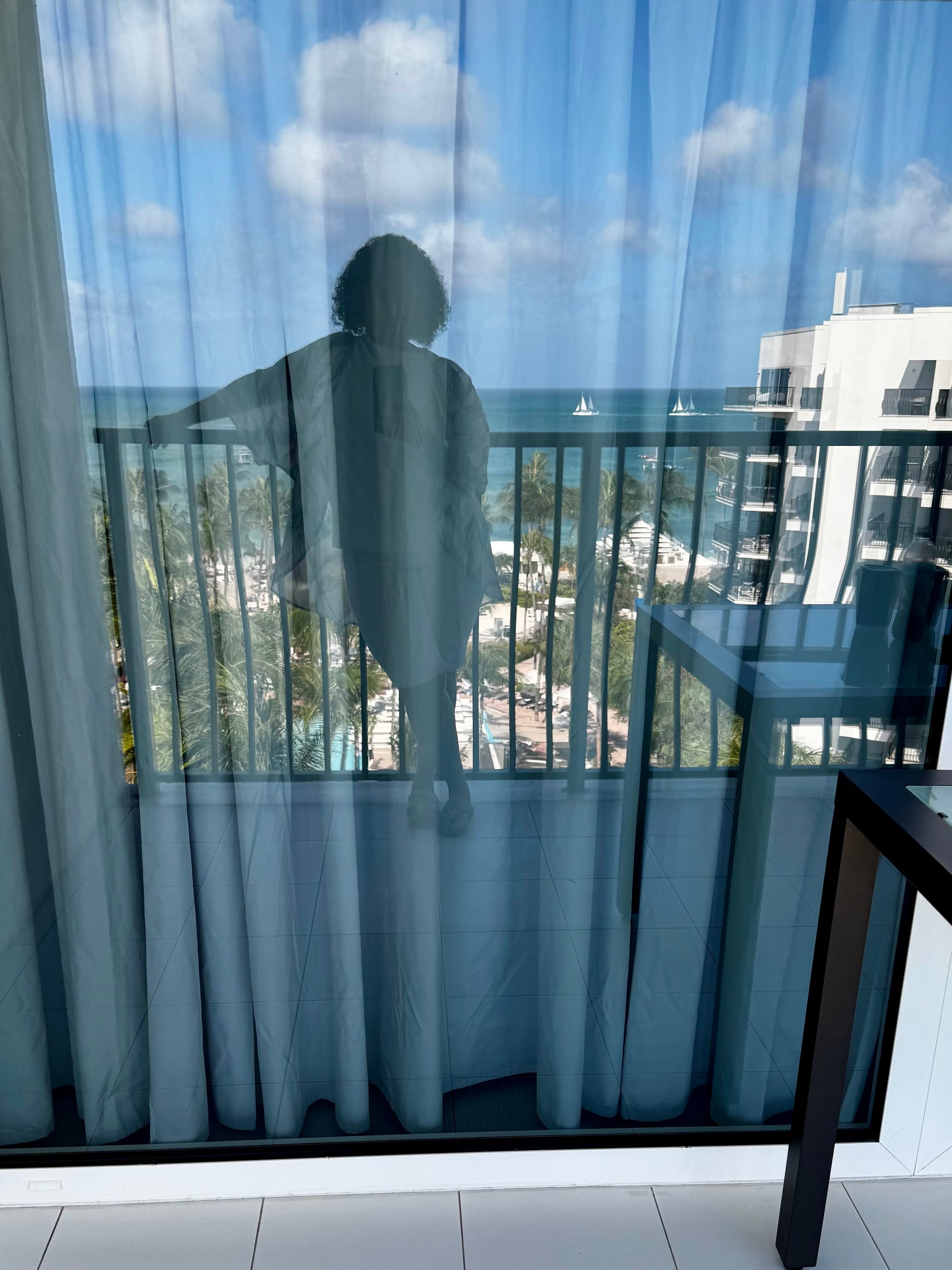 Collection of vacation photos from Aruba: two pairs of feet with in wet beach sand; a gray dove perched on a black hotel balcony railing; a small blue-green lizard on brick pavers; reflection of a woman and beach landscape in floor-to-ceiling windows; bright red flowers blooming among green leaves; and a golden sunset view over the Caribbean with palm trees and white resort buildings in the foreground.